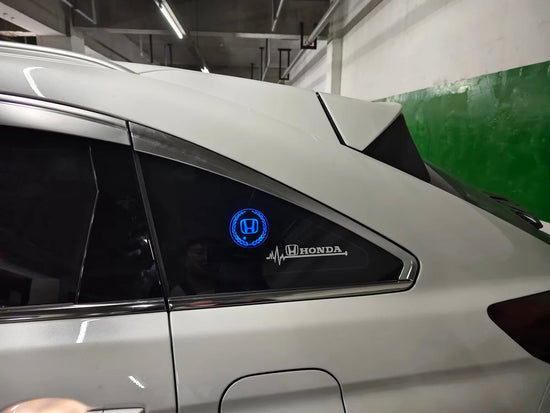 この 光るLEDロゴディスク - お気に入りのカーブランドをスタイリッシュにアピールする、スマートでシンプルな方法です。窓の内側に貼り付けるだけで、動きや振動で自動的に点灯します。